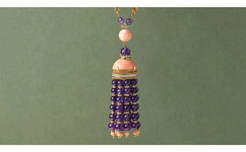 Также коллекционеры боролись за колье от Van Cleef & Arpels, которое ушло с молотка за 190 500 евро. Это украшение 1970-х годов привлекает внимание своей уникальной подвеской с кораллами и бриллиантами. Коллекционеры все чаще обращают внимание на историю и происхождение камней, а также на мастерство, с которым они были изготовлены.