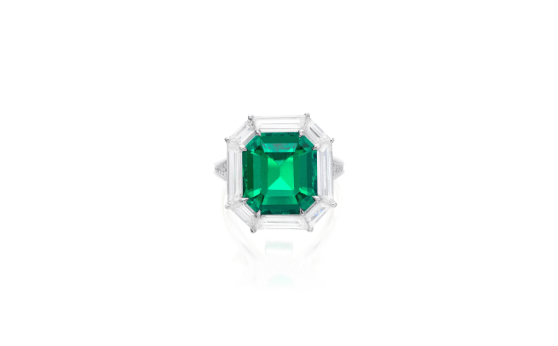 На недавнем аукционе ювелирных изделий, проведённом аукционным домом Phillips в Гонконге, внимание всех присутствующих было приковано к уникальному кольцу, которое стало настоящей звездой мероприятия. Это великолепное украшение, в центре которого находится колумбийский изумруд ступенчатой огранки весом 9,22 карата, было обрамлено бриллиантами трапециевидной огранки и продано за впечатляющие 5,4 миллиона гонконгских долларов (примерно 691 522 долларов США).