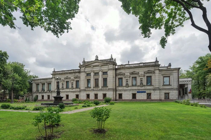 И вот усадьбу он создал, С влияньем греческих начал, В ней зимний сад, парадный зал, Мечту в античности искал! На белой лестнице из грёз, Наверное, нету только роз! А за дворцом — волшебный грот, И сад чарующе цветёт До середины октября, Друзей встречает здесь земля, Ковром душистым из цветов, Даря природы нам любовь, Простор давая всем мечтам, В стремленье к новым временам!
