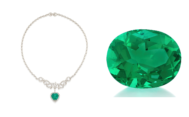 Колье с колумбийским изумрудом в форме сердца, весом 6,10 карата, также привлекло внимание покупателей. Оно было украшено бриллиантами различных огранок, включая огранку маркиз и круглую, что придавало изделию особую элегантность. Итоговая цена колье почти в четыре раза превысила его максимальную оценку, что подчеркивает растущий интерес к ювелирным изделиям с изумрудами на рынке.