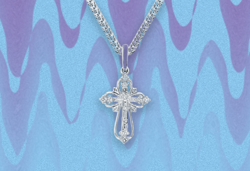 Золотой крестик с бриллиантами станет отличным подарком себе любимому и близким людям. Белое золото делает украшение универсальным, так как оно сочетается абсолютно со всем. Четыре бриллианта украшают подвеску, добавляя роскоши и не утяжеляют его.