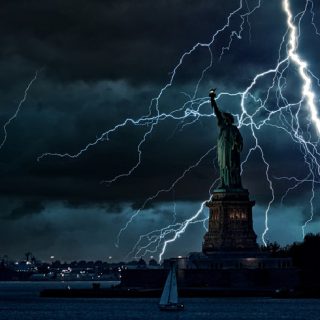 Мощная молния ударила в факет Статуи Свободы в Нью-Йорке