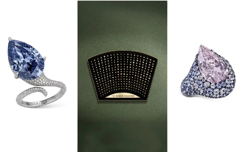 Кольцо от JAR с фантазийным пурпурно-розовым бриллиантом весом 8,68 карата в оправе из сапфиров и бриллиантов также привлекает внимание ценителей. Его оценка составляет 3 миллиона швейцарских франков (3,8 миллиона долларов), что подтверждает высокую ценность и редкость данного изделия.