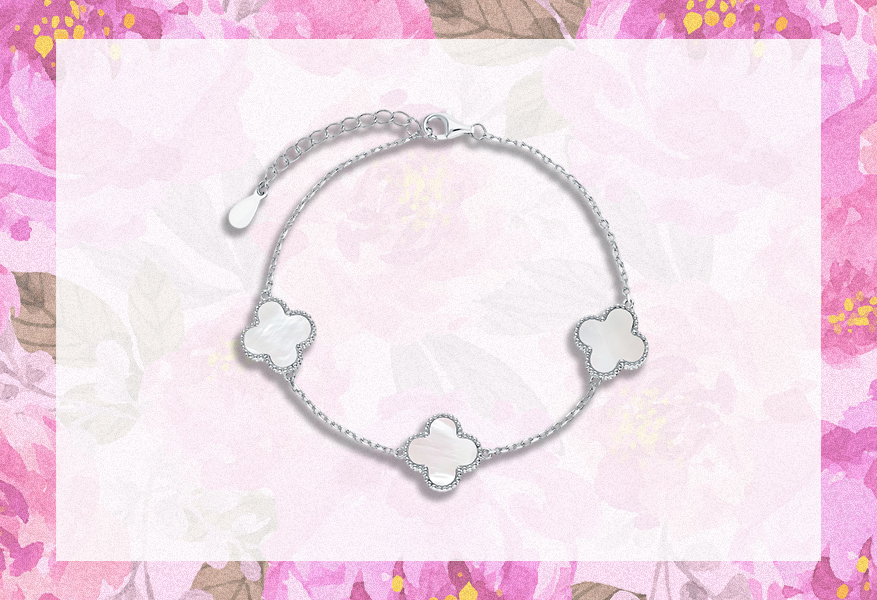 Минималистичный стиль и утончённые формы делают браслет универсальным аксессуаром. Три клевера из натурального перламутра, обрамлённые серебром, выглядят одновременно лаконично и роскошно. Такой дизайн подойдёт как к повседневному образу, так и к вечернему наряду. Клевер, традиционно символизирующий удачу и счастье, обязательно порадует вашу любимую женщину.