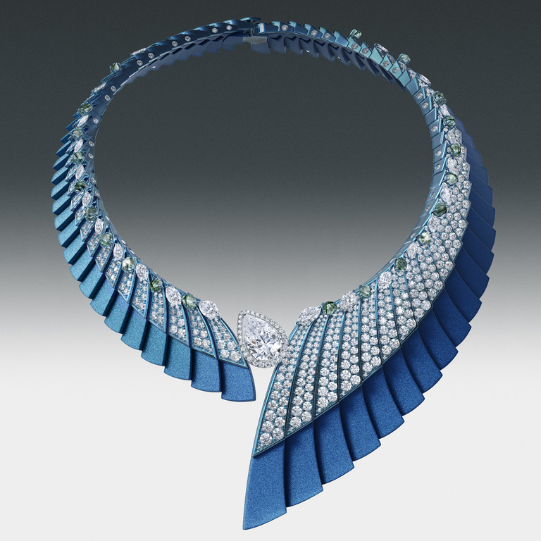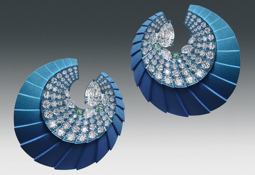 Набор Ascending Shadows («восходящие тени») выполнен из титана и алюминия сине-голубого оттенка, который подчёркивает яркость прозрачный и цветных, фантазийных бриллиантов. В наборе представлено колье и серьги. Аналогичная технология производства использована в комплекте Optical Wonder («оптическое чудо») из розового алюминия и россыпи драгоценных камней.