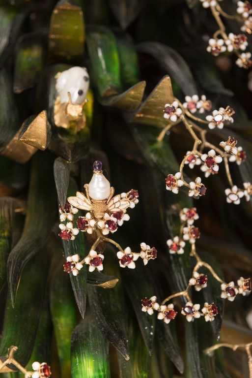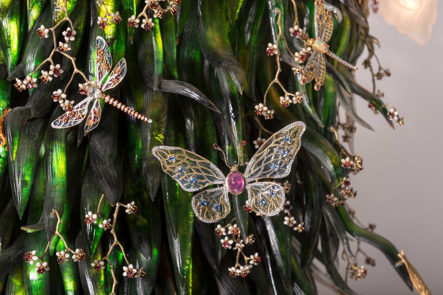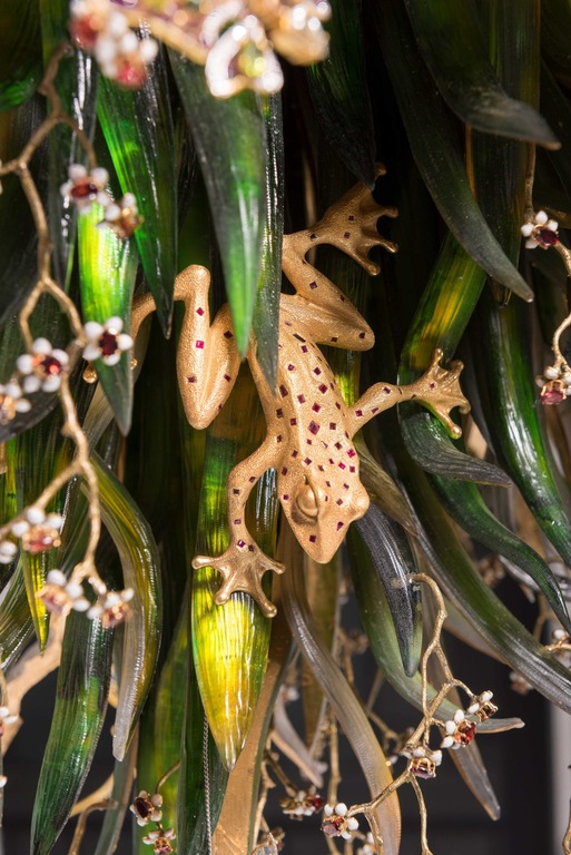 Изделие поистине драгоценное помимо золотого декора ювелир использовал сапфиры, жемчуг, опалы и другие драгоценные камни. На создание люстры ушло не только 6 лет, но и 23 тысяч карат разнообразных камней. В имитации листьев спрятаны птицы, стрекозы, пчелы, улитки, лягушки и другие животные, которые знакомят с разнообразием природного мира родной страны Харамильо.