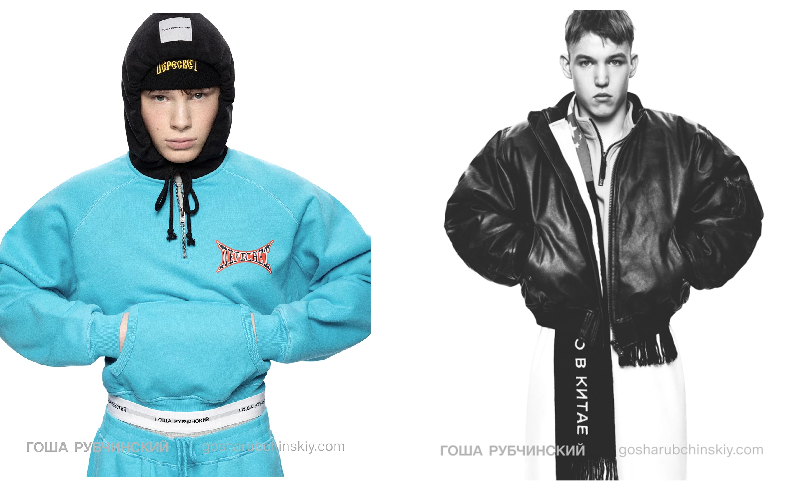 Особое внимание в новой коллекции уделено сезонной графике, которая включает в себя фразы «Пересвет» и «Разработано в России — произведено в Китае». Эти элементы не только подчеркивают уникальность и идентичность марки, но и создают диалог между различными культурами, что является важным аспектом в работе Гоши Рубчинского.