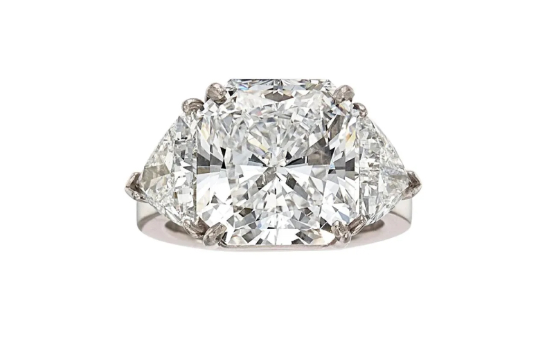 Внимания заслуживает и кольцо с круглым бриллиантом цвета D, чистоты VVS2, весом 5,90 карата, дополненное двумя бриллиантами грушевидной формы. Ожидаемая цена этого изделия составляет 220 тысяч долларов. Интересным лотом станут также серьги с бриллиантами квадратной огранки, один из которых весит 5,39 карата (цвет I, чистота VS2), а другой — 5,41 карата (цвет H, чистота VVS2). Их предварительная максимальная оценка также составляет 150 тысяч долларов.