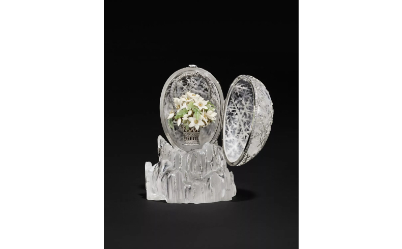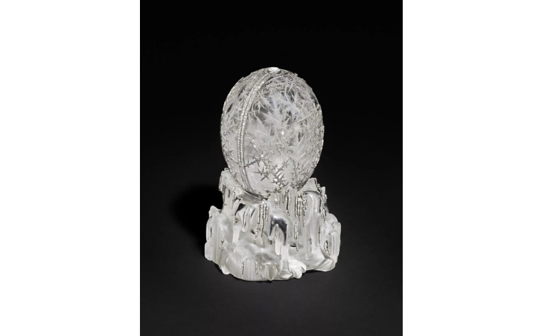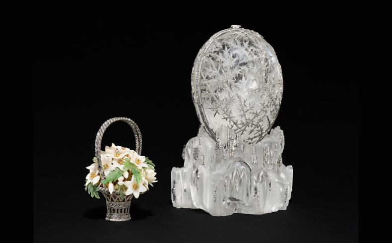 «Зимнее яйцо» было подарено Николаем II, последним российским императором, его матери, императрице Марии Федоровне. Этот шедевр выполнен из горного хрусталя и достигает высоты всего четыре дюйма, но его изящество и внимание к деталям делают его настоящим произведением искусства. Внутри яйца скрывается сюрприз — платиновая корзинка с двумя ручками, украшенная резными цветами из кварца и усыпанная 1 660 бриллиантами огранки «роза».