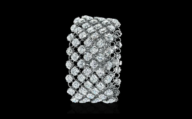 Также привлекает внимание браслет с 92 бриллиантами. Ожидаемая цена составляет от 280 до 320 тысяч долларов. Браслет украшен бриллиантами огранки кушон, общим весом 108,50 карата, и привлекает внимание своим изысканным дизайном.