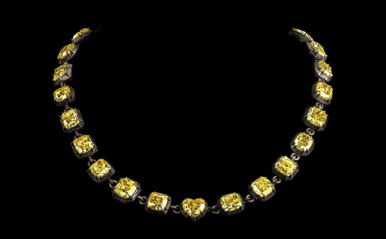 На онлайн-аукционе Joopiter, который проходит с 17 февраля по 5 марта, ожидается продажа колье с желтыми бриллиантами от знаменитого бренда Jacob & Co. Это уникальное украшение, состоящее из 25 бриллиантов фантазийного ярко-желтого цвета, имеет общий вес 112,70 карата и ожидает, что его стоимость достигнет впечатляющих 8 миллионов долларов.
