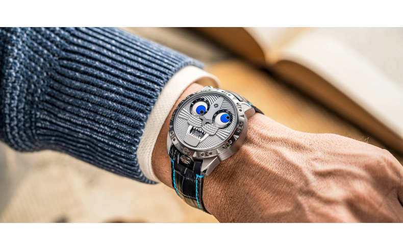 Известный мастер часового искусства Константин Чайкин продолжает удивлять любителей уникальных часов своими новыми интерпретациями в серии Wristmons. Его последнее творение, «Белый тигр», стало настоящим шедевром, который сочетает в себе художественную выразительность и техническое совершенство. Циферблат «Белого тигра» сразу привлекает внимание своим ярким дизайном. Пронзительные голубые глаза, словно живые, смотрят на владельца, а клыкастая ухмылка придаёт часам игривый и загадочный характер.