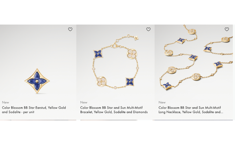 Новые украшения Louis Vuitton продолжают развивать концепцию легкой, почти архитектурной ювелирной композиции. Содалитовые мотивы появляются в различных изделиях — от колье и браслетов до серег и колец. В этих украшениях содалит соседствует с бриллиантами и кабошонами, создавая уникальную игру света и глубины. Техника паве, используемая для обрамления центральных камней, придает дополнительное сияние и изысканность. Контраст между матовым синим оттенком содалита и ослепительным блеском бриллиантов создает визуальное волшебство, демонстрируя мастерство ювелиров Дома Louis Vuitton.