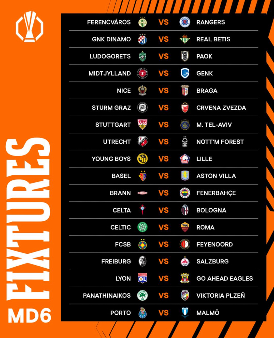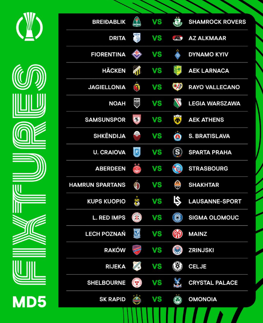 Также в четверг на этой неделе пройдут матчи пятого тура Лиги конференций.