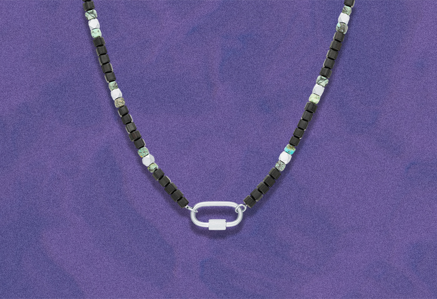 Элегантное и одновременно брутальное украшение из стали с натуральной бирюзой и гематитом. Бирюза символизирует чистоту намерений, помогает развить интуицию и внутреннюю гармонию, а гематит придаёт уверенности и устойчивости в сложных ситуациях.