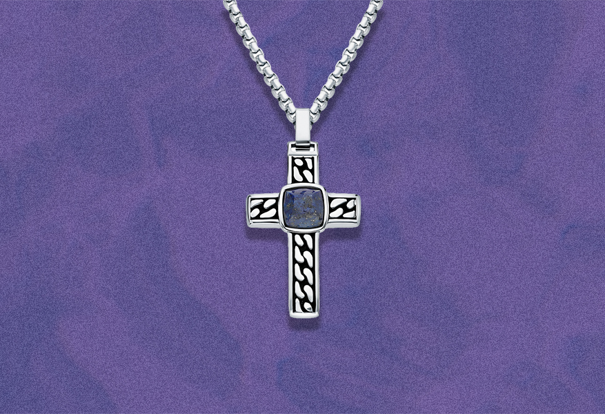 Шейное украшение с лазуритом подчёркивает независимость и креативность Весов третьей декады. Камень способствует интуиции и нестандартному мышлению, а стальное исполнение добавляет мужественности.