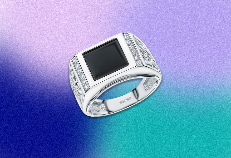 Это мужское кольцо отличается продуманной конструкцией и выразительным, статусным характером. Украшение выполнено из серебра, который хорошо держит форму, благодаря чему кольцо подходит для регулярной носки. Широкая шинка создаёт ощущение основательности и подчёркивает мужественность дизайна, а аккуратно проработанные линии добавляют современную эстетику. Фианиты и оникс встроены так, чтобы не выступать слишком ярко, а работать как спокойный визуальный акцент.