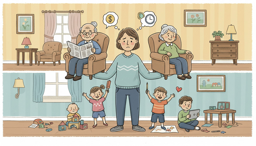 - Сэндвич – человек зажат между заботой о своих детях и родителях.
