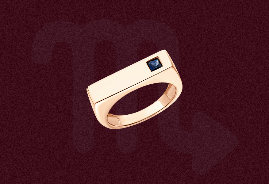 Сапфир добавляет в образ духовную глубину, ясность мысли и внутреннюю мудрость. Золото делает кольцо благородным и выразительным. Для мужчины-Скорпиона такое кольцо может служить не просто украшением, но и символом внутренней стойкости и духовного видения.