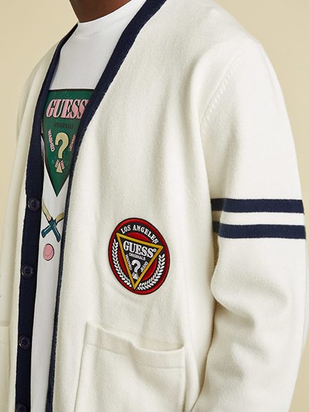 Глядя на этот кардиган, сразу вспоминаешь школьные или университетские годы. Такой high school стиль остаётся модным и востребованным. Кардиган можно надеть на работу или отправиться в нём на повседневную прогулку. Белый цвет добавит свежести и лёгкости в образ.