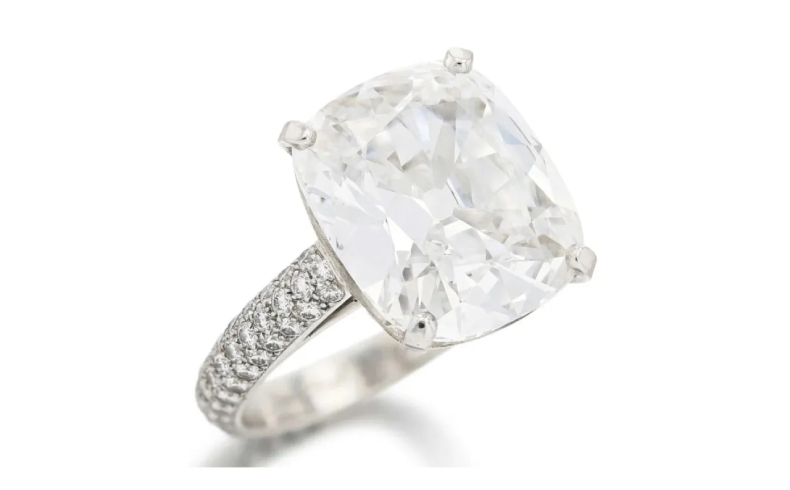 Главным лотом аукциона стало кольцо с бриллиантом в форме кушон, весом 7,39 карата, цвета D и безупречной чистоты, созданное знаменитым домом Van Cleef & Arpels. Это украшение, оцененное в пределах от 330 до 550 тысячи евро, является настоящим произведением искусства. В сочетании с элегантным дизайном и высококачественными материалами, кольцо привлекает внимание коллекционеров и ценителей ювелирного искусства по всему миру.