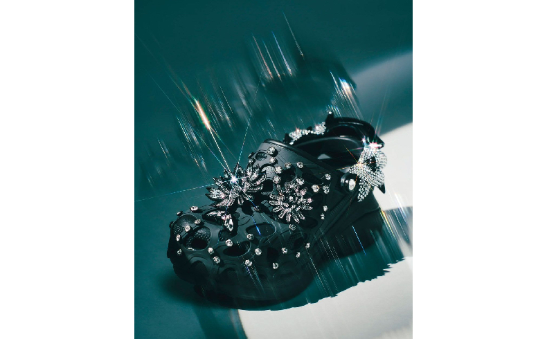 Бренды Crocs и Swarovski объединились, чтобы стать настоящим прорывом, которое превратило повседневную обувь в предмет роскоши. Crocs, известный своими удобными и практичными сабо, в этот раз представили обновлённую версию своей легендарной модели Classic Clog. Обувь выполнена в элегантном сером цвете и украшена узором из сверкающих кристаллов, который напоминает крылья стрекозы. Этот визуальный элемент не только привлекает внимание, но и добавляет изысканности, делая каждую пару уникальной.