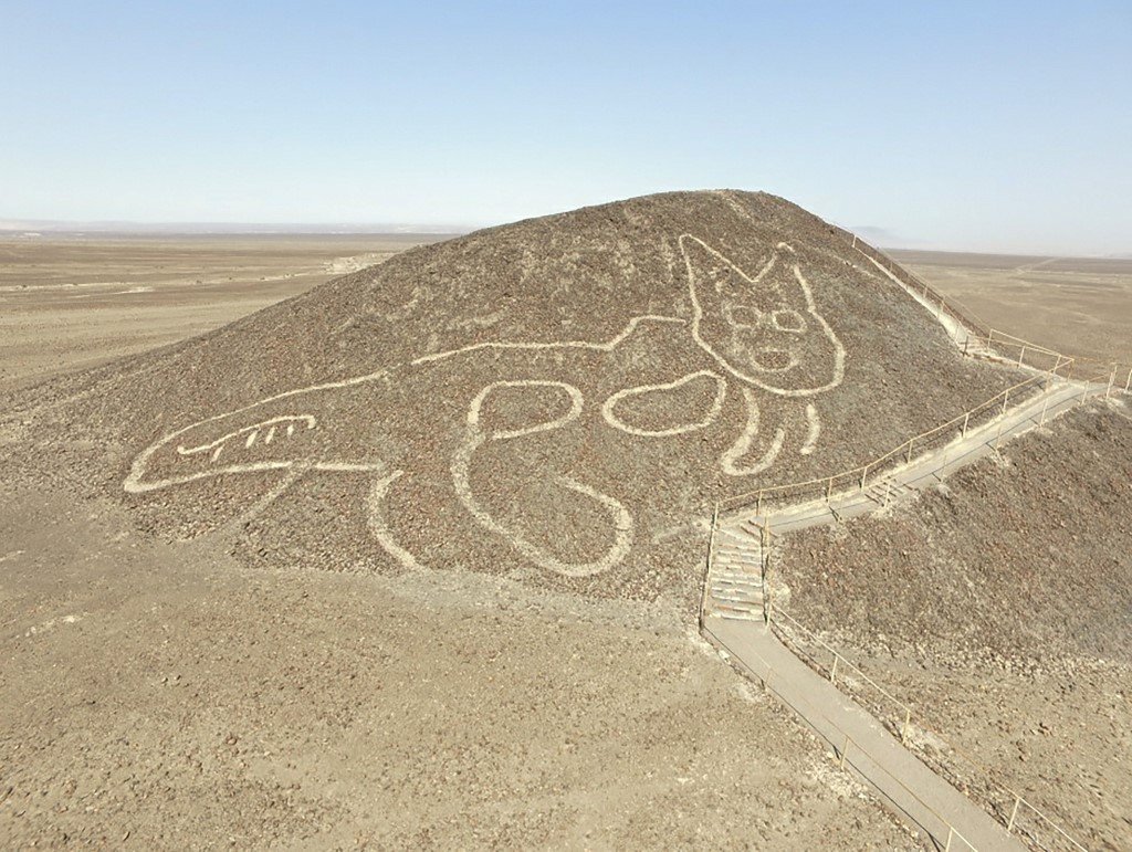 Огромные фигуры животных и человеческих существ, наблюдаемые лишь с воздуха, покрывают пустынное плато в Перу. Среди изображений — 47-метровый паук, 93-метровая птица-колибри, 134-метровый орёл, ящерицы, аллигаторы и прочие существа. Эти рисунки (геоглифы) созданы путём нанесения неглубоких борозд глубиной до полуметра и шириной до полутора метров, выполненных разными людьми в разные эпохи (V–VII века нашей эры). Несмотря на различия в сроках исполнения, общий визуальный стиль геоглифов удивительно однороден.