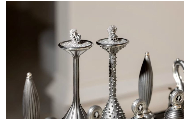 После успеха предыдущего проекта «Другое королевство», который стал настоящим предметом коллекционирования, Юм решила создать нечто большее. В центре новой коллекции находится шахматный набор, выполненный из серебра и инкрустированный бриллиантами. Шахматная доска, традиционно воспринимаемая как арена для соперничества, превращается в пространство равновесия. Блеск драгоценных камней здесь символизирует не роскошь, а свет мудрости и осознанности. Каждая фигура шахматного набора — это маленькая скульптура, созданная с ювелирной точностью.