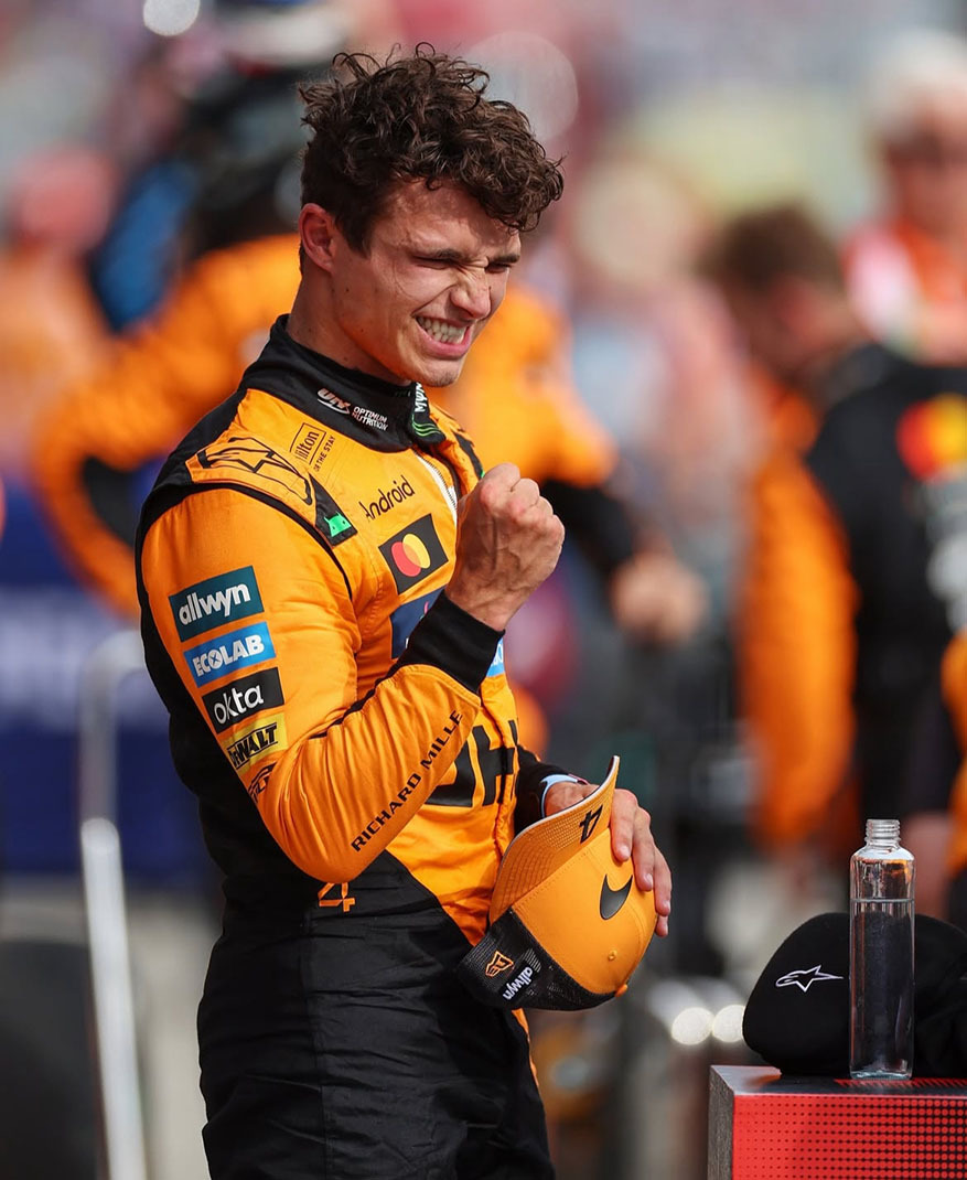 Следующим в топ-5 гонщиков Формулы 1 на данный момент идет сокомандник Оскара Пиастри, пилот «Макларен» Ландо Норрис. 25-летний британский гонщик занимает второе место в турнирной таблице нынешнего сезона, набрав 275 очков. В этом сезоне впервые за долгое время «Макларен» показывает такое тотальное доминирование, что оба пилота так уверенно занимают лидирующие позиции и отлично выступают на Гран-при. Ландо Норрис выступает за «Макларен» с 2019 года. Начал показывать наиболее успешные результаты с прошлого сезона, по итогу сезона Формулы 1 2024/2025 стал Вице-чемпионом мира Формулы 1.