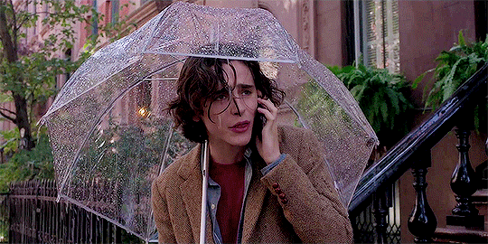 Ещё одна нью-йоркская мелодрама, созданная мастером жанра Вуди Алленом. Герой фильма, Гэт (Тимоти Шаламе), приезжает в город вместе со своей однокурсницей Эшли (Эль Фаннинг), мечтая провести время вдвоём. Однако судьба распоряжается иначе, и парочка оказывается вовлечена в цепь случайных новых знакомств, встреч со старыми друзьями и забавных приключений. Дождливая погода подчеркивает задумчивость персонажей, заставляя зрителя сопереживать героям и одновременно наслаждаться серым шармом города. Медленные прогулки по мокрым улицам и изысканные интерьеры кафе и ресторанов наполняют фильм особым осенним колоритом.