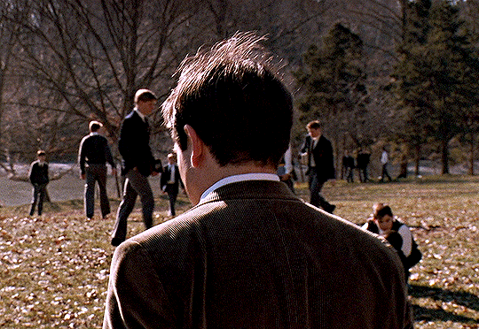 Так как учебный процесс зачастую стартует в сентябре, фильмы о школах и колледжах нередко пропитаны мотивами наступления осени. «Общество мёртвых поэтов» — яркий пример подобного подхода. Персонажи проводят большую часть времени в аудиториях, но и активно участвуют в спортивных мероприятиях на свежем воздухе, радуются закатам солнца и ночами собираются в пещерах, читая стихи. Особенное впечатление производит сцена в парке, где студенты впервые интересуются историей литературного кружка, членом которого некогда являлся сам Китинг.