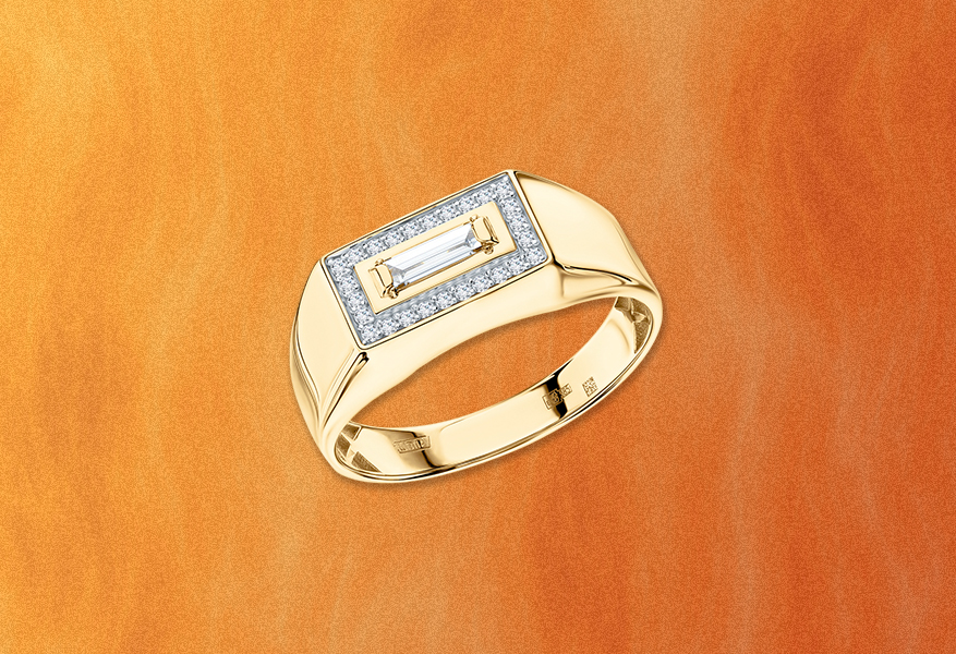 Золотое кольцо с бриллиантами — это вечная классика, которая никогда не выглядит случайной. Чистый блеск бриллиантов на фоне благородного золота читается как знак статуса и вкуса. Человек, который выбирает такой вариант, явно не экономит на деталях. Бриллиант традиционно символизирует твёрдость, стойкость и ясность — качества, которые особенно ценятся у мужчины, привыкшего опираться на себя. Такое кольцо органично чувствует себя и в деловом дресс‑коде, и в вечернем образе, добавляя к нему завершённость, которая превращает хороший наряд в безупречный.