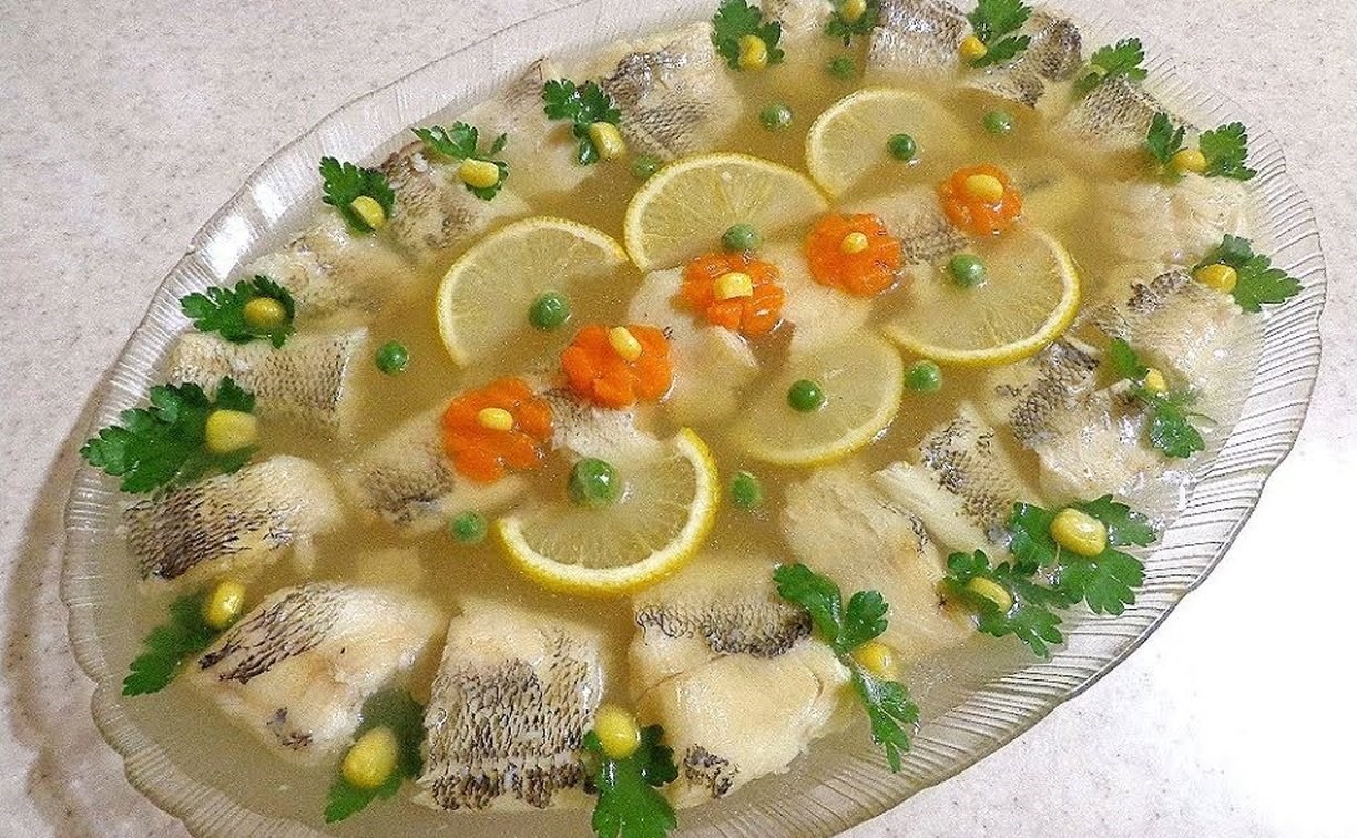 Заливное из осетра – настоящий гастрономический шедевр, где вкус зависит не от рыбы, а от бульона. Заливать нужно только филе осетра, а остальные части рыбы используют для варки бульона. С этим блюдом можно всячески экспериментировать: подавать либо в бокалах, либо с другими морепродуктами. И не забывайте про зелень!